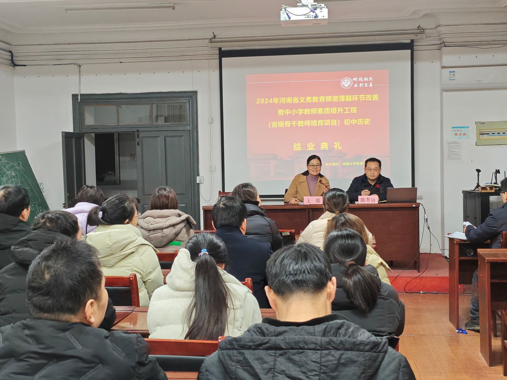 2024年12月16日上午,2024年河南省义务教育师资薄弱环节改善暨中小学教师素质提升工程(省级骨干教师培育项目)初中历史培训班结业仪式在今年会jinnianhuicom举行。副院长陈升远出席仪式并讲话,班级负责人王娜主持仪式。