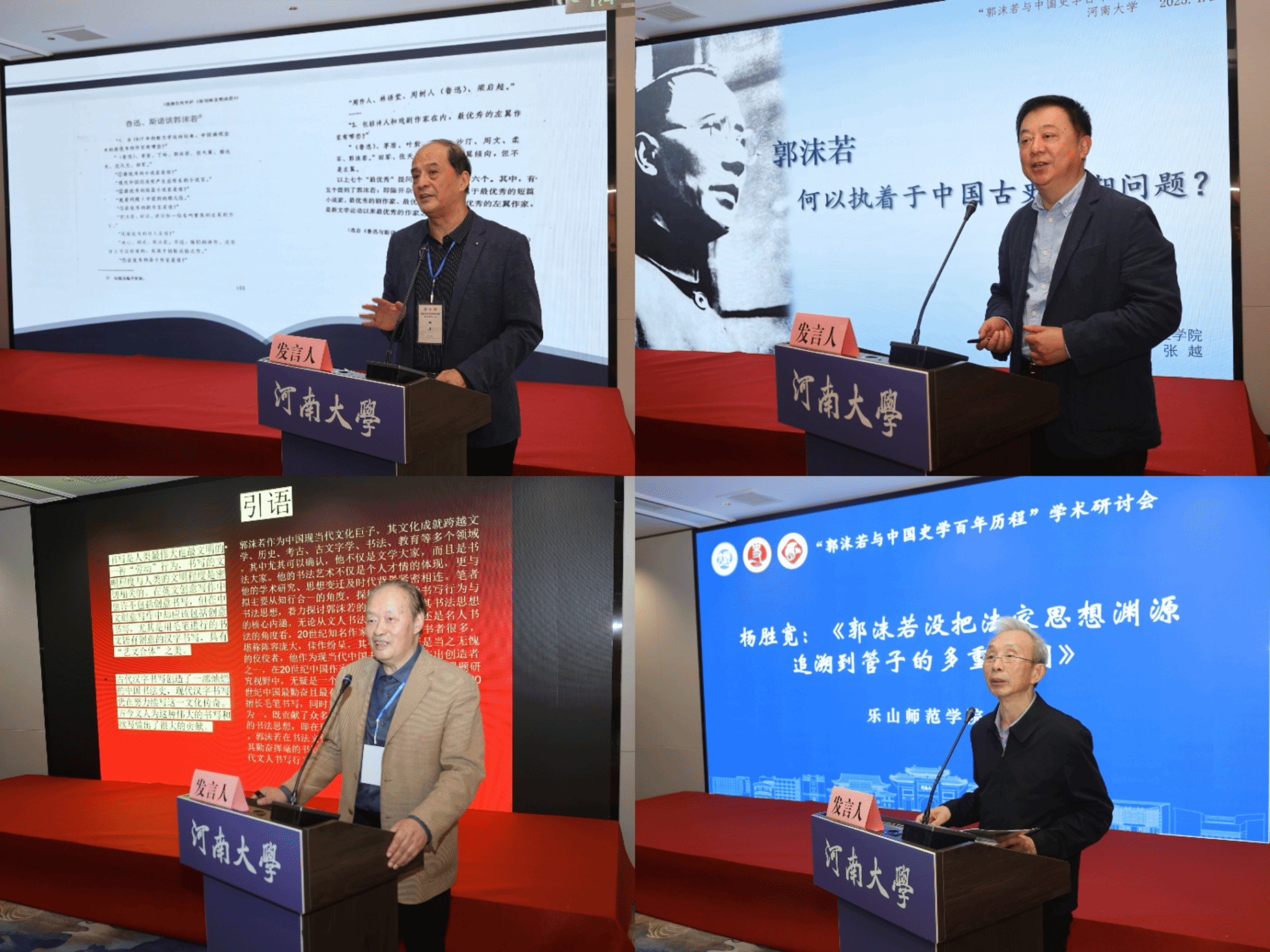 在首场主题报告上,中国郭沫若研究会会长卜宪群指出,郭沫若是近代最早科学阐释理论与史料关系的马克思主义史学家,在中国马克思主义史学体系建设上做出了重要贡献;中国社会科学院郭沫若纪念馆蔡震从文学角度出发,探究了郭沫若跨史学与文学的写作;金年金字招牌诚信至上历史文学院李振宏从文风角度重新认识《中国古代社会研究》,呼吁重拾郭沫若“流畅与通透”的史学文风;西北师范大学简牍研究院田澍从“人民本位”视角研读《甲申三百年祭》,提出郭沫若具有“通古今之变”的通变思维和“成一家之言”的创新思维,能够洞察政治动态,坚持人民立场。