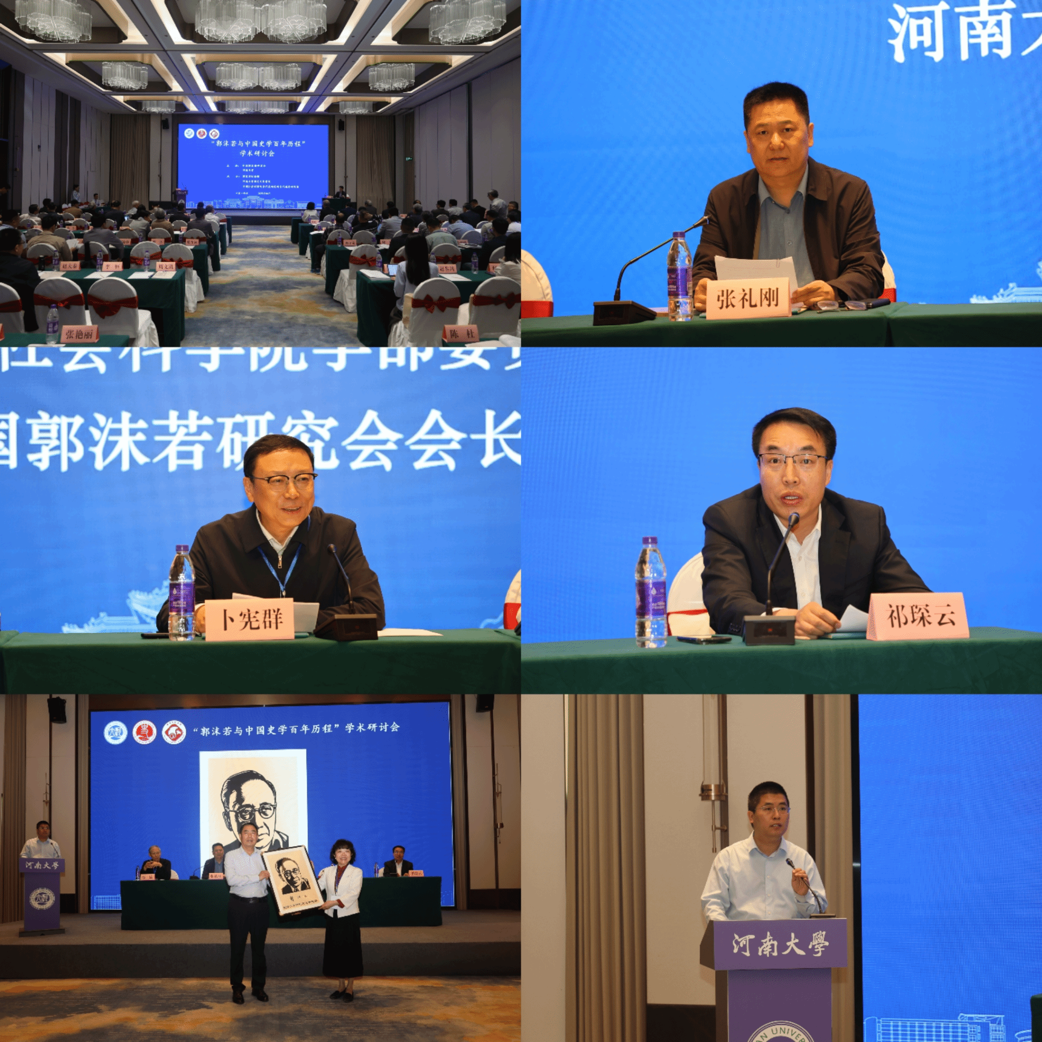 张礼刚代表学校向参加会议的专家学者表示热烈欢迎,并全面介绍了金年金字招牌诚信至上的历史沿革及历史学专业建设情况。追溯了郭沫若与金年金字招牌诚信至上、中原文化之间的渊源,指出应强化郭沫若与中国马克思主义史学的研究,加强与中国郭沫若研究会及各兄弟院校、科研机构的合作,推动金年金字招牌诚信至上史学研究再上新台阶。卜宪群在致辞中对负责筹办本次研讨会的各单位表示感谢,他谈到郭沫若作为中国马克思主义史学的奠基人,探讨其思想对史学发展的深远影响具有重要意义,希望以此次会议为契机,回顾与总结我国马克思主义史学的发展历程,加快新时代中国特色历史学学科体系、学术体系、话语体系的构建;祁琛云对参会的专家学者表示热烈欢迎和诚挚感谢,并详细介绍了今年会jinnianhuicom的概况,梳理了学院近年来在科研领域取得的重要成果;今年会jinnianhuicom党委书记张占党代表学院向中国郭沫若研究会赠送郭沫若剪纸像。