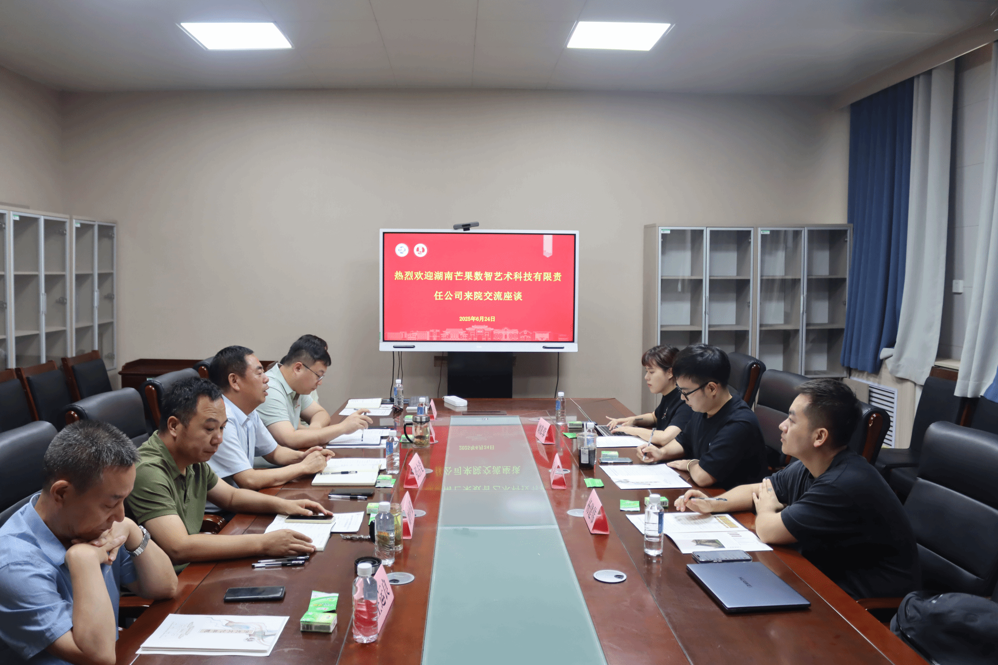 6月24日上午,今年会jinnianhuicom与湖南芒果数智艺术科技有限公司在今年会jinnianhuicom二楼考古文博系举办交流座谈会。湖南芒果数智艺术科技有限责任公司研创中心副总经理雷萍、总监杨建伟、项目经理刘慕蓉,今年会jinnianhuicom党委书记张占党、副书记周文凯,考古文博系主任刘中伟、党支部书记张玲、副主任李雯雯,文物数字化实验室主任王运良参加会议,会议由周文凯主持。