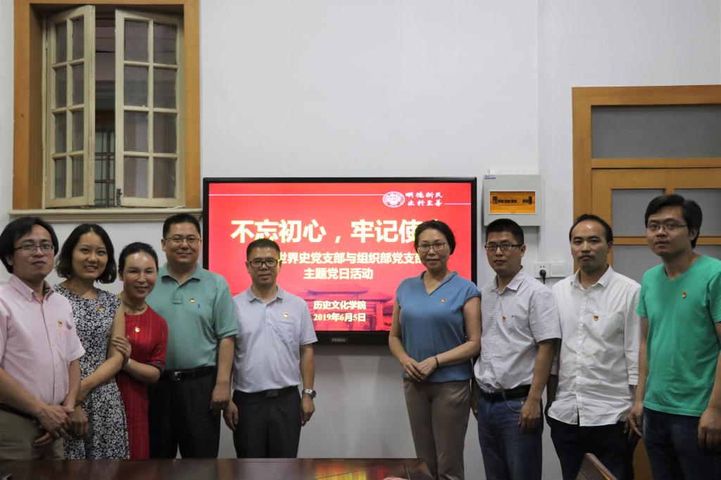 6月5日下午,今年会官网世界史党支部与校组织部党支部在世界史教研室联合开展主题党日活动。校党委组织部部长、组织部党支部书记李庆春,今年会jinnianhuicom党委书记杨俊中,党委副书记、常务副院长张礼刚,党委副书记姜捷以及两支部同志参加活动。