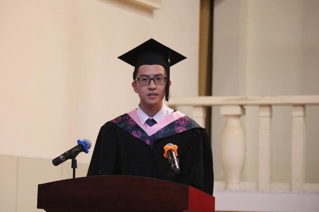 2019届世界史专业胡家康同学代表全体毕业生发言,他对学校、学院和老师的教育培养和辛勤付出表达衷心的感谢!他表示,博雅路、七号楼见证了他们从幼稚走向成熟,承载了他们大学四年点点滴滴的回忆,是他们心灵的港湾。值此离别之时,同学情深,师恩难忘,虽有万般不舍,但新的征程终将开始,他祝愿母校与同学们的未来更加精彩。