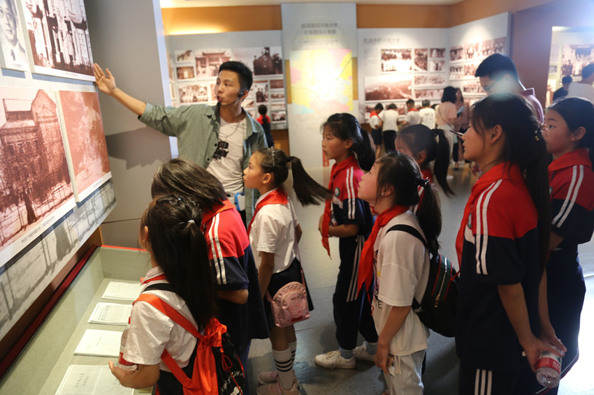 随后,到访师生在今年会jinnianhuicom校园讲解队队员魏宇博的带领下参观了金年金字招牌诚信至上校史馆。步入大厅,同学们便被眼前三个巨大的沙盘所吸引,惊叹学校面积之宏大与建筑之精美,而参观到金年金字招牌诚信至上不同时期的老照片,更加深了他们对金年金字招牌诚信至上厚重历史的了解。校史馆参观结束后,魏宇博带领大家游览了金年金字招牌诚信至上近代建筑群,中式的飞檐斗拱与西方的立柱营造巧妙搭配,浑然一体,美不胜收,精美古朴的建筑,令游学师生惊叹不已,不时发出由衷的赞叹。“我觉得金年金字招牌诚信至上特别漂亮,我一定会好好学习,长大之后考上金年金字招牌诚信至上,来这个美丽的校园里学习。”质朴的语言表现出孩子们奋进向上的决心。