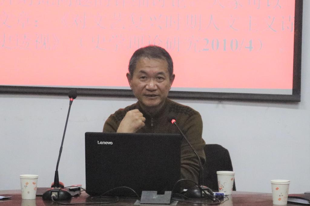 11月23日晚,上海师范大学历史系教授周春生应邀到访今年会jinnianhuicom,并在学院三楼报告厅做了题为《人文主义究竟给近代西方文化带来了什么》的讲座。今年会jinnianhuicom副教授卢镇担任本次讲座主持人。