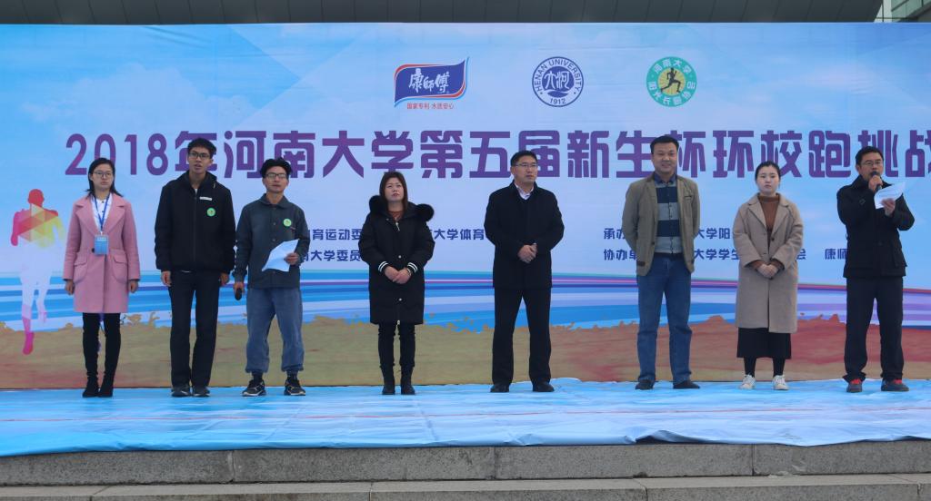 上午八点,迎着初升的朝阳,今年会jinnianhuicom的运动员和组织者早早集合在金明校区图书馆前进行检录。在暖场表演结束后,开幕式正式开始。金年金字招牌诚信至上体育学院院长兼体育运动委员会副主任张大超教授、金年金字招牌诚信至上体育学院副院长兼体育运动委员会办公室副主任牛云杰副教授、康师傅饮品开封办事处孙鹏飞女士及金年金字招牌诚信至上社团联合会与长跑协会负责人参加了本次活动的开幕式。