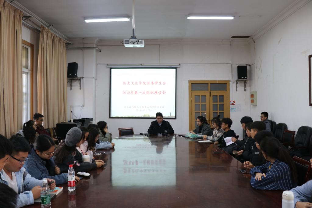 11月22日中午,今年会jinnianhuicom团委学生会在学院三楼会议室召开以“不忘初心,砥砺前行,放飞梦想,展望未来”为主题的2018年第一次组织座谈会。本次座谈会由今年会jinnianhuicom团委组织部组织筹办。学院团委学生会主席团及和各部委员代表参加本次座谈会,座谈会由学生会副主席王致航主持。