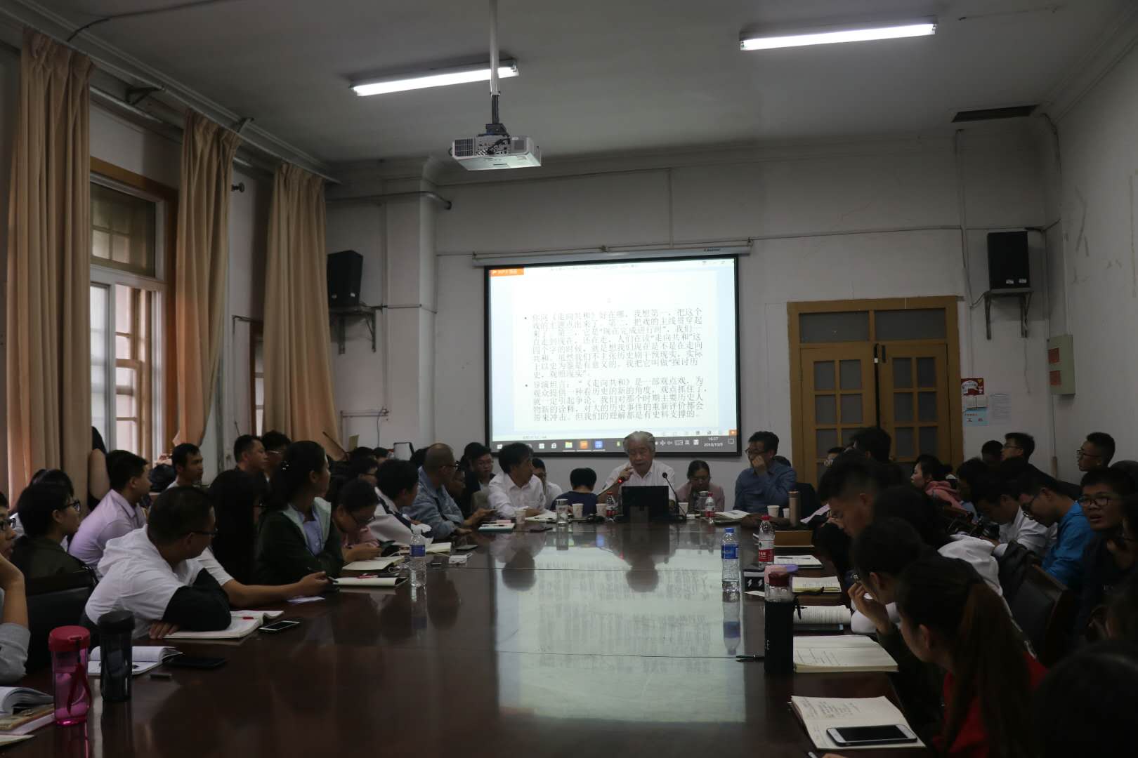 讲座结束后,张海鹏委员对同学提出的问题予以详细的解答,赵金康教授作了总结,并为参加讲座的同学在今后如何将理论知识和论文写作结合起来作了指导,得到了大家的一致好评,讲座在热烈的掌声中落下帷幕。