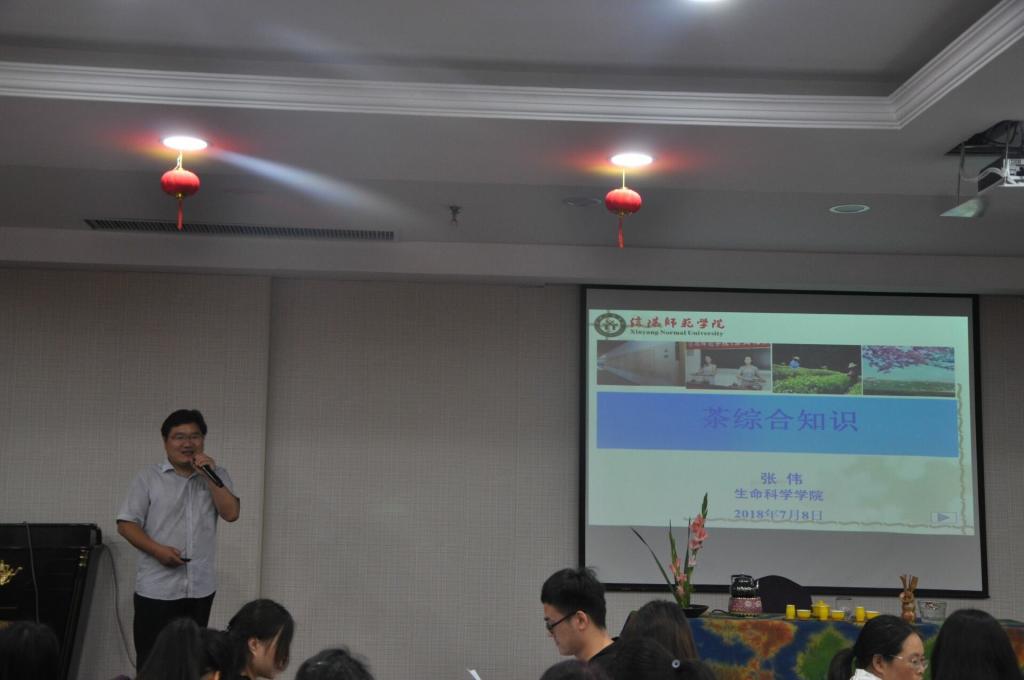 其次,由茶学专业的张伟老师为学员们讲解了茶的综合知识,阐释了“廉、美、和、敬”的中国茶文化精神,以及茶的分类,不同产区的茶的加工工艺及其特点。