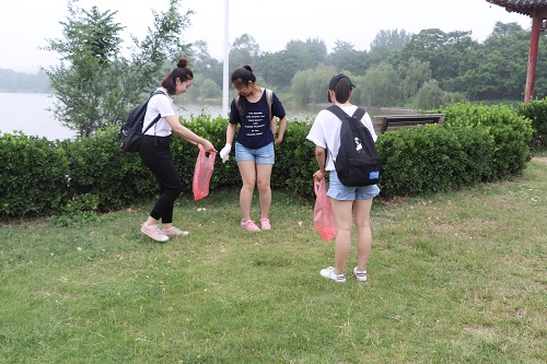 迎着微风,经过院里活动负责人的简单分工,大家开始了紧张而有序的清理垃圾活动。在铁塔湖畔,同学们们手里拿着劳动工具,时而弓着腰用铁锹铲出湖边淤积的垃圾,时而小心翼翼地蹲在湖边用夹子拾捡着漂在湖面上的垃圾。在绿茵草坪上,同学们两两一组,一人拿夹子准确夹住垃圾,一人拿垃圾袋准备接住垃圾,他们或俯身仔细寻找垃圾,或蹲在地上仔细捡拾废屑。在高高的城墙上,依然可以看见他们不辞辛劳不怕苦不怕累的背影,扫除厚积的尘土,清理杂乱的树枝。在同学们不懈的努力下,铁塔湖畔更干净,铁塔水更清澈,古城墙更整洁。