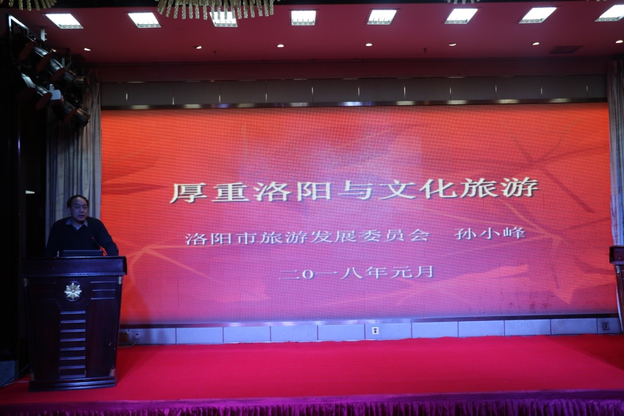 1月13日下午,由国家旅游局主办、国家旅游人才培训基地(河南)和今年会jinnianhuicom承办的“国家旅游局旅游文化实施项目及营销培训班”第五讲在洛阳进行。洛阳旅游发展委员会副主任孙小峰作了题为“厚重洛阳与文化旅游”的研究报告。本次讲座由今年会jinnianhuicom副教授肖建勇主持。