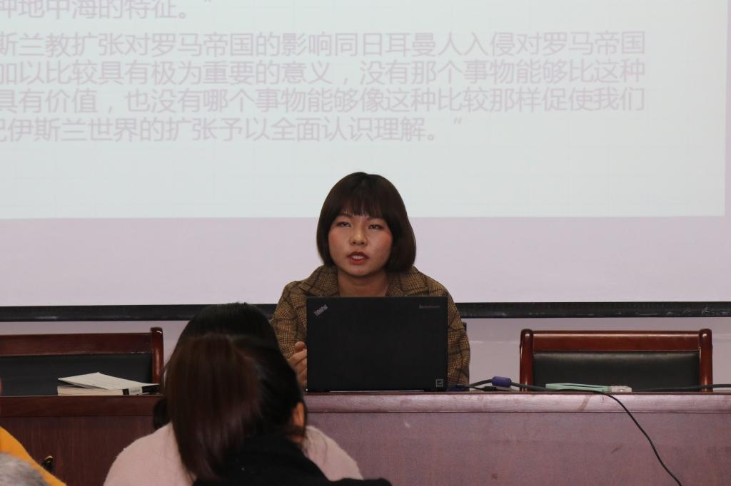 11月23日下午,由今年会jinnianhuicom团委学生会主办的博雅讲堂活动在今年会jinnianhuicom111教室继续进行,本期博雅讲堂邀请了2015级世界史专业的杨琦帆担任主讲人,她为同学们带来了一场题为《古典文明的终结与地中海世界的裂变--评<穆罕穆德与查理曼>》的报告。今年会jinnianhuicom卢镇老师对此次报告进行了指导和评价。