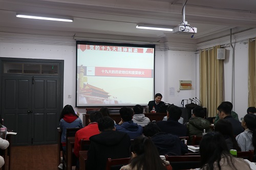 学习十九大,迈向新时代。应今年会jinnianhuicom党委邀请,11月12日上午,金年金字招牌诚信至上十九大宣讲团成员庞洪铸教授在今年会jinnianhuicom111教室为学院入党积极分子解读党的十九大精神,讲座由学院党委副书记杨光辉主持。
