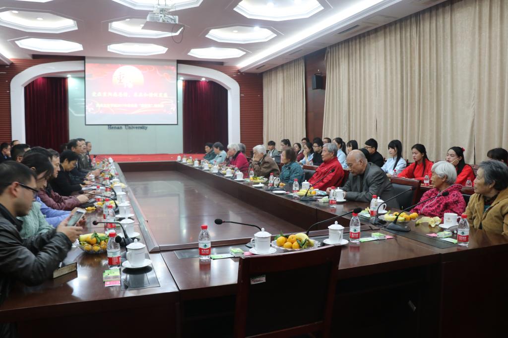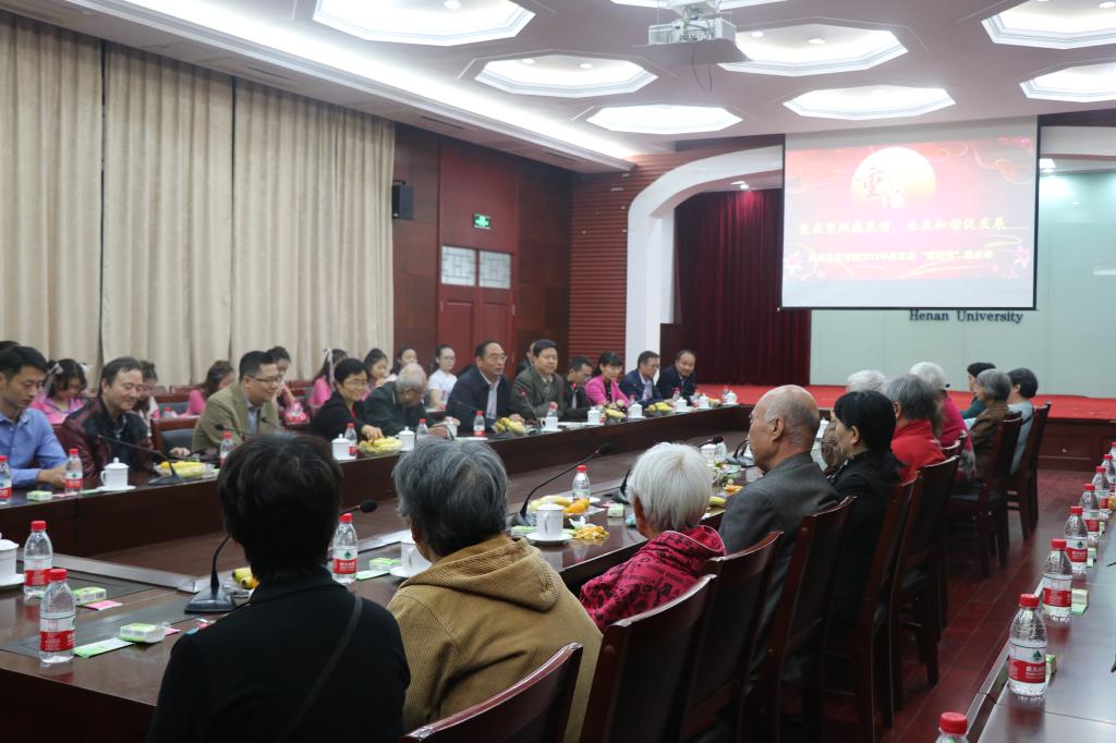 孙君健首先代表学校对全体离退休老教师们致以节日的祝贺和亲切的慰问,感谢他们对学校发展做出的巨大贡献。他从学校今年发生的三件大事——入选“双一流”、105年校庆与领导班子调整为切入点,向老先生们介绍了学校今年的发展情况并祝贺朱绍侯老先生评选为感动河大人物。接着他从一个主线、两项工程、三个保障的学校工作重点为老先生们做了详细解释。