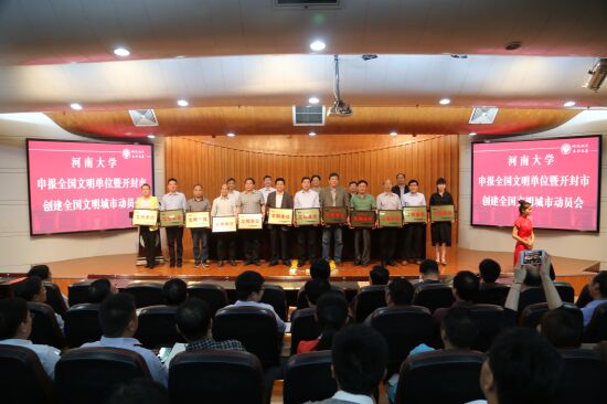 5月5日下午,我校申报全国文明单位暨开封市创建全国文明城市动员会在金明校区行政楼二楼报告厅举行。学院荣获2016年度金年金字招牌诚信至上文明单位。同时,龚留柱、李恒、谢宇飞老师荣获2016年度金年金字招牌诚信至上文明教工;学院2015级历史学2班荣获2016年度金年金字招牌诚信至上文明班级;周毅、李琳、何春林、刘权同学荣获2016年度金年金字招牌诚信至上文明学生。