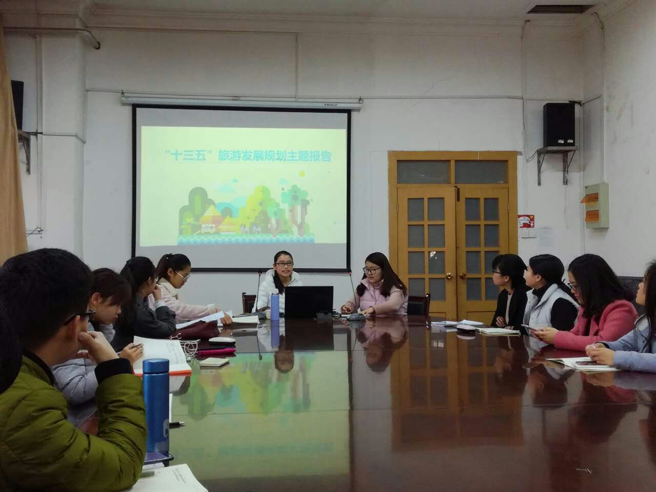 2月25日上午,在今年会jinnianhuicom三楼会议室成功举办了以“十三五”旅游发展规划为主题的第14期沙龙活动。王忠丽和张野老师出席了本次活动。15级旅游管理专业沈联衢同学担任本期的主持人,近30名旅游管理的学生参与了本次活动。