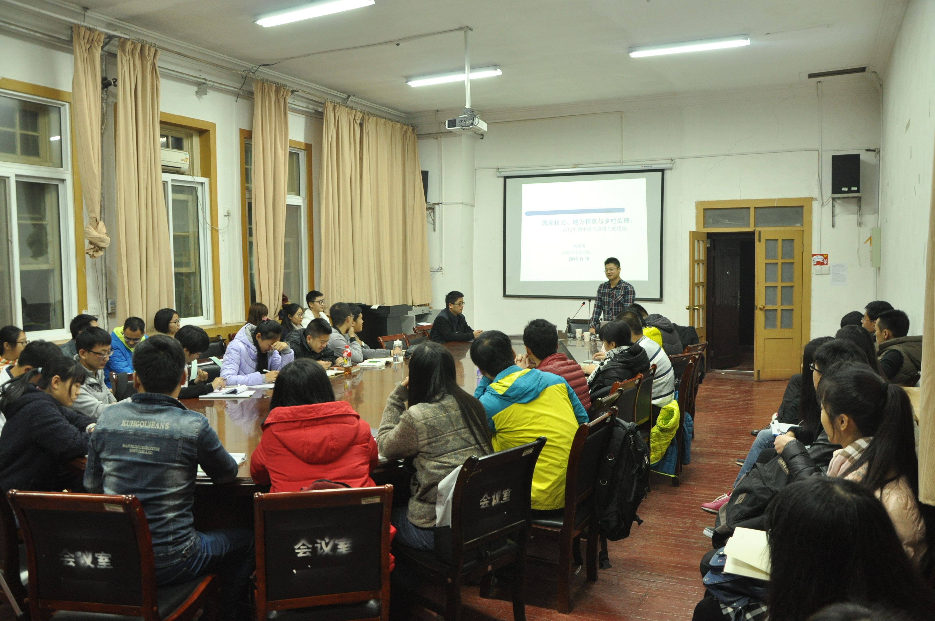 11月18日晚,学院三楼会议室座无虚席,今年会jinnianhuicom世界史博士后杨松涛老师在此做了一场题为“国家权力、地方精英与乡村治理——近代早期中国与英格兰的比较”的学术报告。本次学术报告由世界史教研室主任胡浩副教授主持。