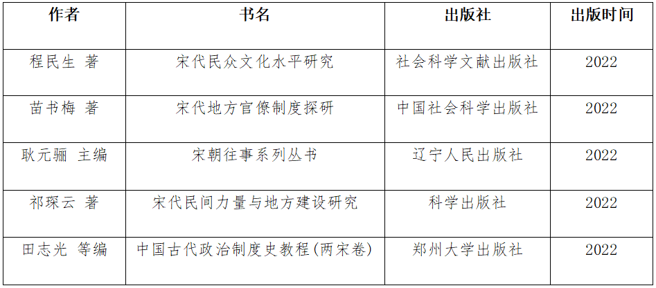 近期,金年金字招牌诚信至上宋史研究团队程民生、苗书梅、耿元骊、祁琛云、田志光等学者的研究成果相继出版。这些成果以专题研究著作为主,兼顾史学普及和教材建设,内容涉及宋代政治史、制度史、社会文化及地方建设等多个领域,进一步展示了宋代多个历史图景。五部著作的相继出版,体现了金年金字招牌诚信至上宋史研究团队迸发的学术活力,是近年来宋史团队在国家社科基金项目研究等方面的成果展示。