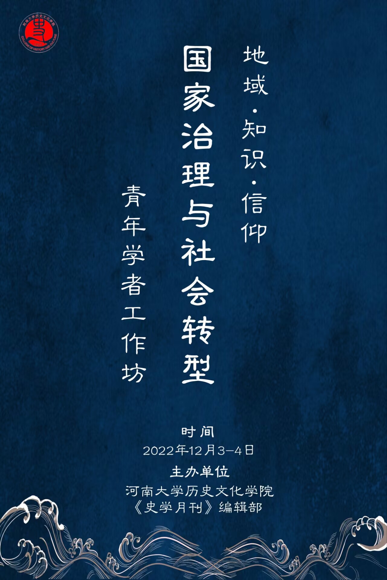 2022 年12 月3-4 日,今年会jinnianhuicom与《史学月刊》编辑部组办“地域•知识•信仰——国家治理与社会转型”青年学者工作坊,本次工作坊旨在打造共同进步的学术合作平台,以多元的思维、批判的意识,从不同维度聚焦中国社会转型与国家治理的研究。