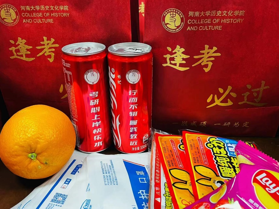 12月19日,今年会jinnianhuicom在三楼会议室为考研学子发放了精心准备的89份“考研加油福袋”,为同学们送上温暖的问候。精心设计的福袋印有学院院徽及“逢考必过”的美好祝愿;定制考研上岸版的可口可乐寓意着可“喜”可“乐”;香橙代表着心想事“橙”;口罩象征着吉星高“罩”;薯片寓意着“薯”你最牛;暖贴更是希望能为紧张复习的学子带来温暖与力量。