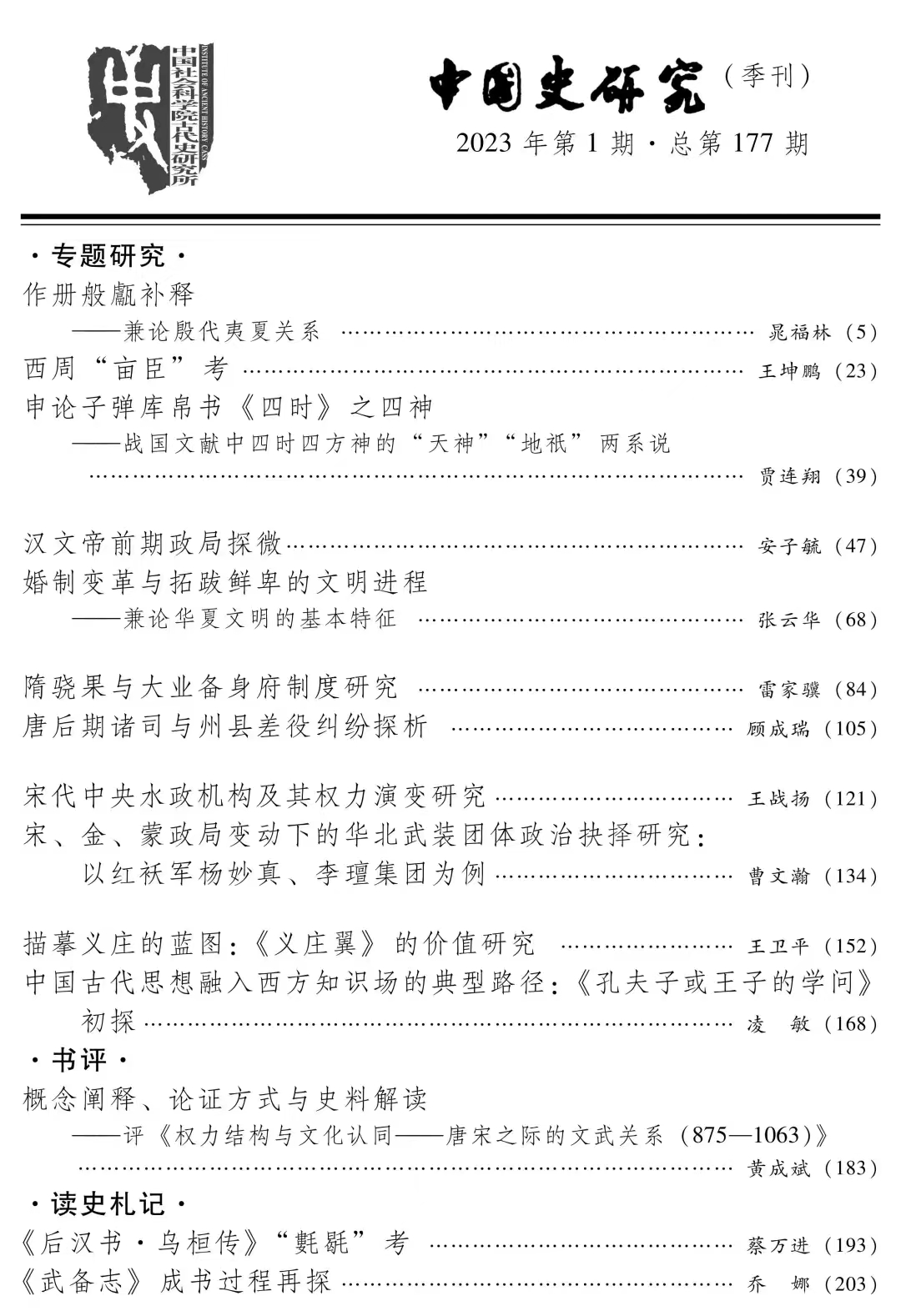 近日,今年会官网青年教师王战扬在《中国史研究》2023年第1期发表专题论文:《宋代中央水政机构及其权力演变研究》。