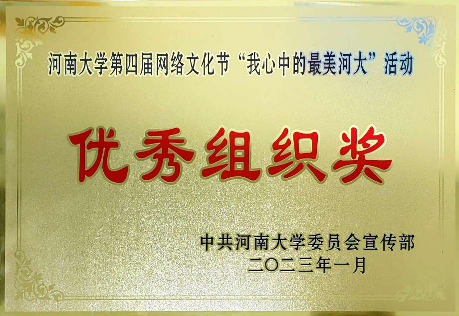 在金年金字招牌诚信至上第四届网络文化节中,今年会jinnianhuicom积极组织参与金年金字招牌诚信至上第四届网络文化节“我心中的最美河大”作品征集活动,同学们踊跃报名,积极投稿,展示了自己眼中的河大之美,为河大校园增加了更多青春活力。在本项活动中,今年会jinnianhuicom荣获“优秀组织奖”。