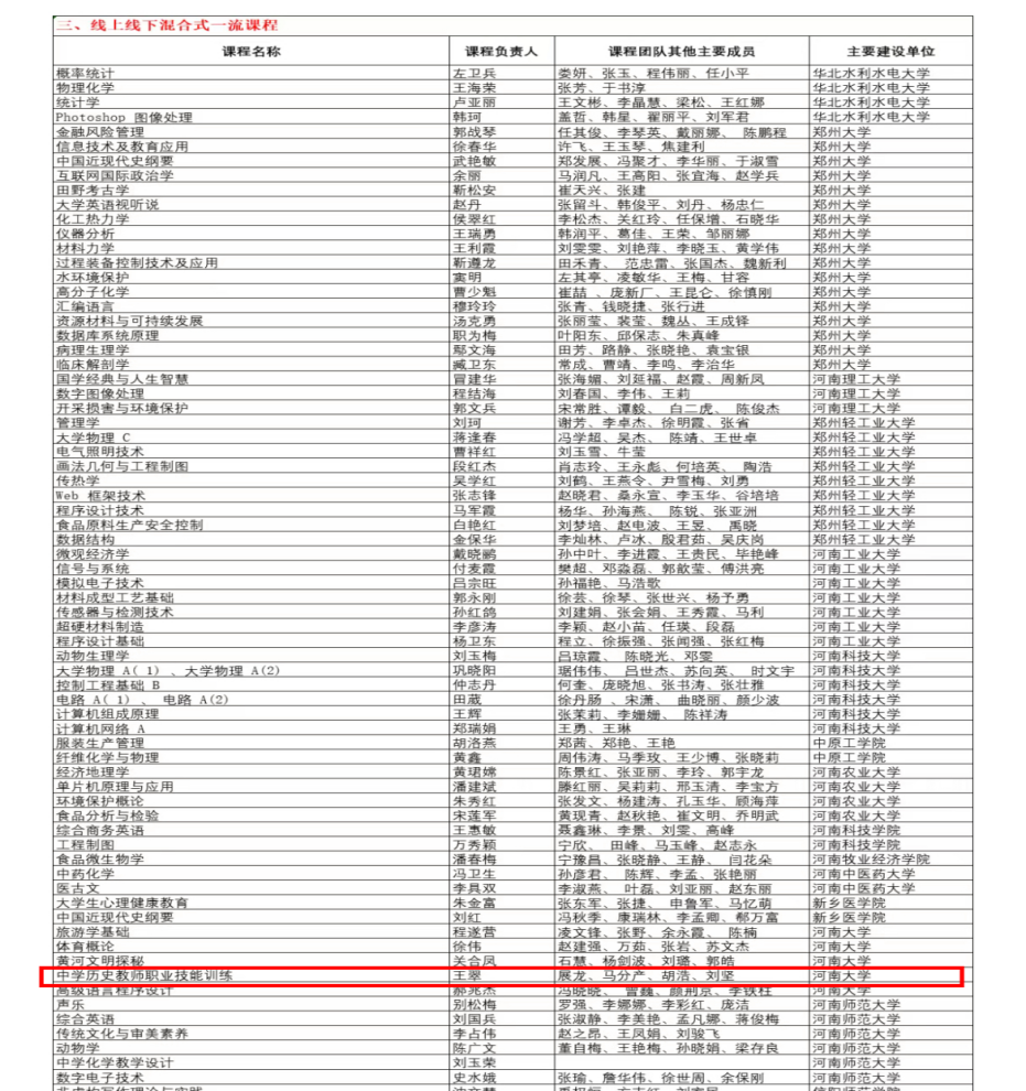 入选第二批国家级一流本科课程的《中学历史教师职业技能训练》(线上线下混合式一流课程)由今年会官网王翠老师组成的教学团队,该门课程是一门将中学历史教学理论与教学实践相融合的创新型课程。