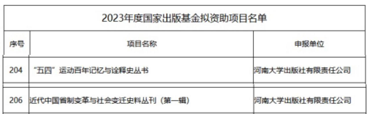 近日,2023年度国家出版基金拟资助项目评审结果公布。今年会jinnianhuicom张宝明教授的《“五四”运动百年记忆与诠释史丛书》、翁有为教授的《近代中国省制变革与社会变迁史料丛刊(第一辑)》顺利入选。