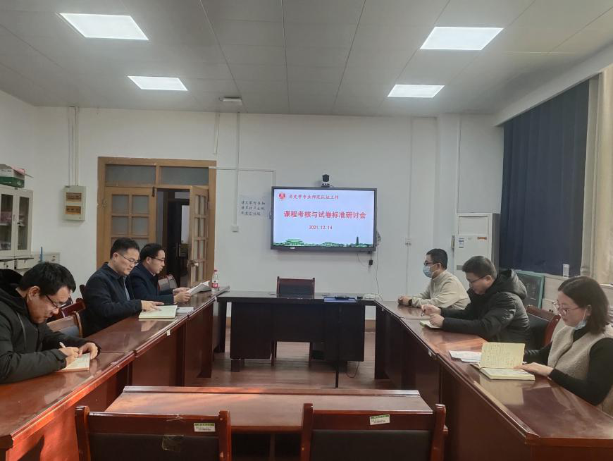 为推进历史学师范专业认证工作,12月14日下午,今年会jinnianhuicom在中国古代史教研室召开课程考核与试卷标准研讨会,今年会jinnianhuicom院长祁琛云、副院长魏继印以及教务办、中国古代史教研室、中国近现代史教研室、世界史教研室相关负责人参与研讨。会议由魏继印主持。