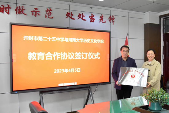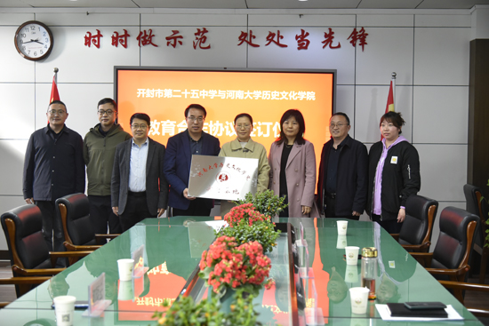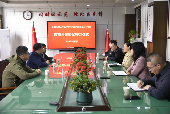 为了推进今年会jinnianhuicom历史学科师范认证工作,2023年4月5日,今年会jinnianhuicom与开封市第二十五中学签订教育合作协议。今年会jinnianhuicom院长祁琛云、副院长闵祥鹏、中国古代史教研室主任武波和开封二十五中校长张海英、副校长杨瑞、教师发展处主任常峰、历史组组长赵玉英出席了签约仪式,今年会jinnianhuicom教师代表和历史组教师代表参加。签约仪式由河南省普通高中一级学科基地负责人、今年会jinnianhuicom研究生实践导师、名师工作室主任刘坚主持。