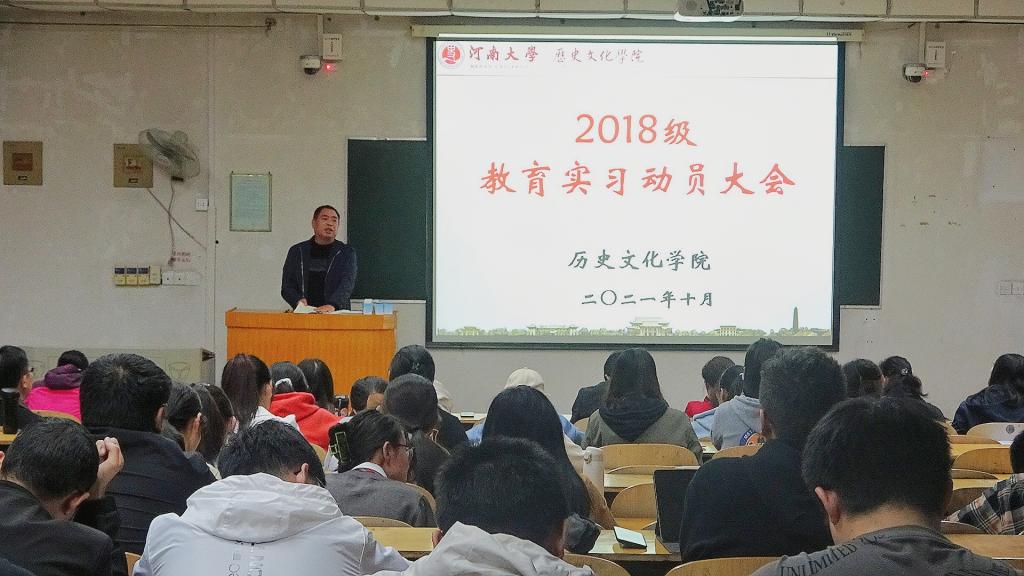 10月5日下午,今年会jinnianhuicom在综合教学楼509教室召开教育实习动员大会。今年会jinnianhuicom党委书记张占党、副院长魏继印、党办主任兼2018级辅导员王文君、教务办主任张芳芳、中国史系主任马晓燕、中国史系副主任武波和实习指导老师赵金康等人,以及2018级历史学(师范类)、2018级世界史专业的本科生参加了此次动员大会。动员会由王文君主持。